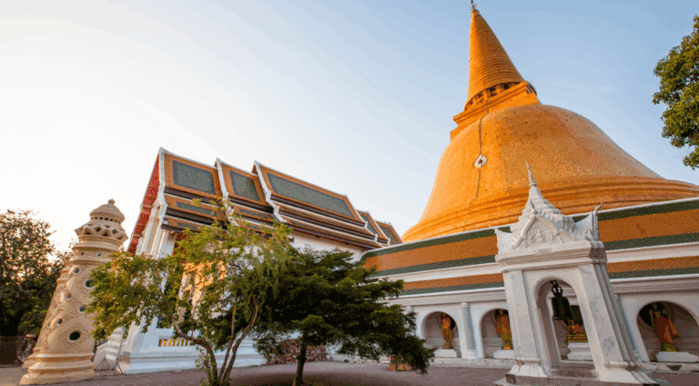Visit the majestic Phra Pathom Chedi in Nakhon Pathom, the tallest stupa in Thailand and a spiritual landmark. This towering golden monument is an awe-inspiring sight and a focal point of Thai Buddhism.